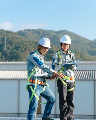 Green Roof telah menyiapkan dan menerapkan berbagai program dan prosedur manajemen untuk memenuhi komitmen dan standar HSSE yang diadopsi untuk proyek pembangkit listrik tenaga surya atap.