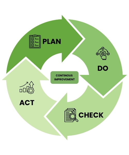 - Act: Menerapkan tindakan perbaikan untuk meningkatkan kinerja.